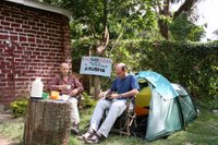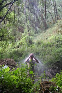 Heerlijk zo'n koude, harde douche 's ochtends als je je tent uitstapt!