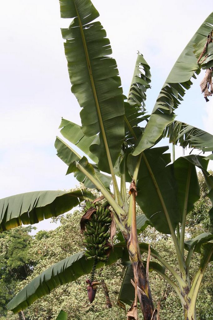 Met een gids hebben we een rondwandeling gedaan waarbij we een heleboel kamerplanten tegenkwamen die hier gewoon in het wild groeien. De bomen zijn hier gigantisch. Sommigen worden 'opgegeten' door de 'strangling ficus'. Dit is een boomsoort die zijn water via de wortels uit de lucht haalt en die om een bestaande boom heengroeit. De bestaande boom sterft uiteindelijk af, maar dit kan jaren duren.