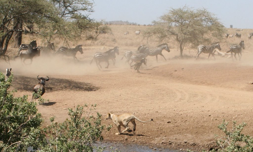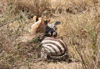 Een dag later zagen we vlak voor onze neus ook een leeuw een zebra te pakken nemen.