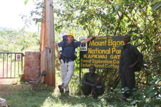 Na weer een vermoeiende rit in een matatu zijn we in het westen van Kenia de grens overgestoken en in Uganda aangekomen. Vanuit Mbale hebben we het Mt Elgon National Park bezocht. Een gids/ranger was weer verplicht...